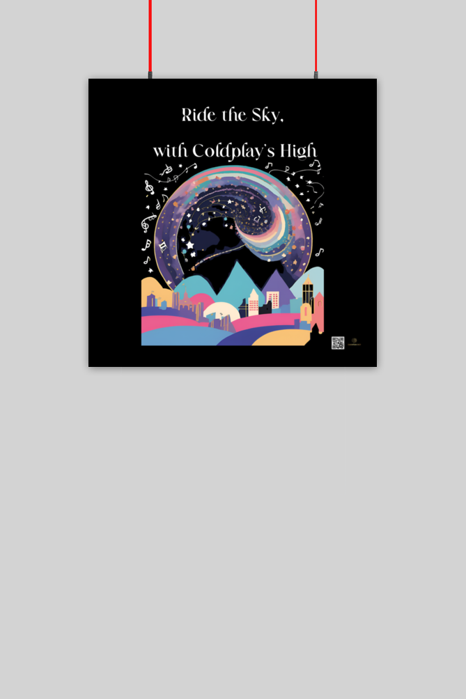 The phrase “Ride the Sky, with Coldplay’s High” is beautifully placed above the artwork, evoking a sense of freedom, inspiration, and musical energy. Whether you’re a die-hard Coldplay fan, an art lover, or someone who appreciates dreamy, surreal cityscapes, this poster is a perfect addition to your room, studio, office, or music corner.