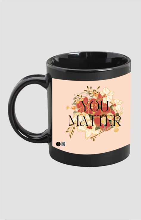 Start your day with a warm reminder of self-worth with our “You Matter” 11oz Black Coffee Mug. Featuring light reddish-toned vintage flowers and beautiful typography that reads “You Matter,” this mug brings a touch of elegance and positivity to your morning routine.