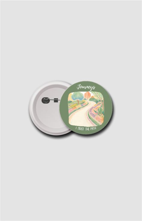 Wear your inspiration with our 44mm “Journeys – Trust the Path” Badge, a perfect accessory for dreamers and explorers. This beautifully designed badge features a scenic illustration of a winding road with the uplifting message “I Trust the Path.” Whether you’re adding it to your backpack, jacket, or tote, this badge serves as a daily reminder to stay on course and embrace life’s journey.