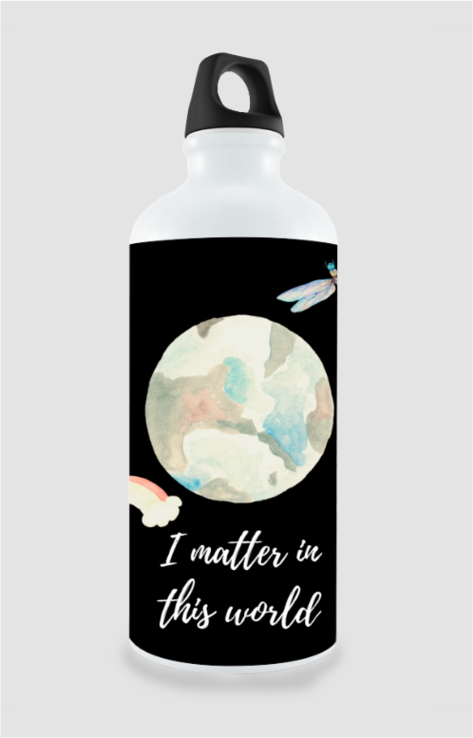 Stay hydrated and inspired with this 750ml sipper bottle featuring a soft watercolor Earth, a rainbow, and dragonflies, along with the uplifting message “I Matter in the World”. This design promotes positivity, self-worth, and mindfulness, making it the perfect companion for your daily routine, gym, travel, or work.
