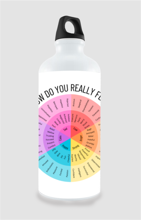 Stay hydrated while staying emotionally aware with the Spectrum of Emotions Sipper Bottle. Featuring a vibrant and detailed emotion wheel design with the phrase “How Do You Really Feel?”, this bottle is not just a hydration tool—it’s a wellness companion.