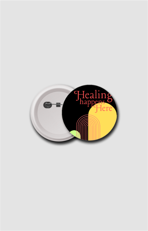 Wear your healing journey with pride using our 75mm Badge, featuring the uplifting phrase “Healing Happens Here” alongside a modern geometric half-circle design. This badge serves as a gentle reminder of resilience, self-care, and personal growth, making it a meaningful accessory for your bag, jacket, tote, or lanyard.