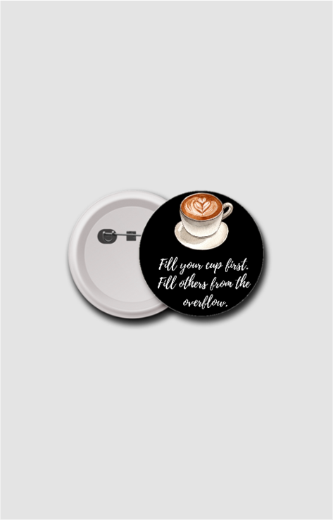 Wear a daily reminder to prioritize self-care and wellness with our “Overflow with Self-Care” 75mm Badge! This stylish and motivational accessory features a cozy cappuccino illustration along with the inspiring message: “Fill your cup first. Fill others from the overflow.”