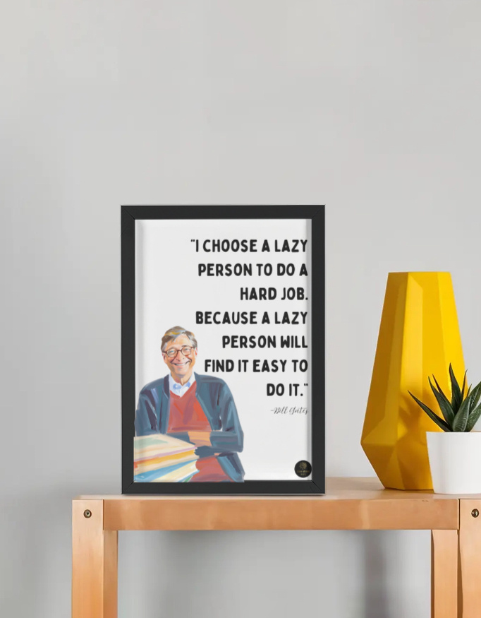 Add a witty yet insightful touch to your walls with this Bill Gates motivational framed poster, featuring his clever take on problem-solving and efficiency. Perfect for offices, study rooms, and workplaces, this poster inspires smart thinking and unconventional approaches to challenges. A unique gift for entrepreneurs, students, and innovators.