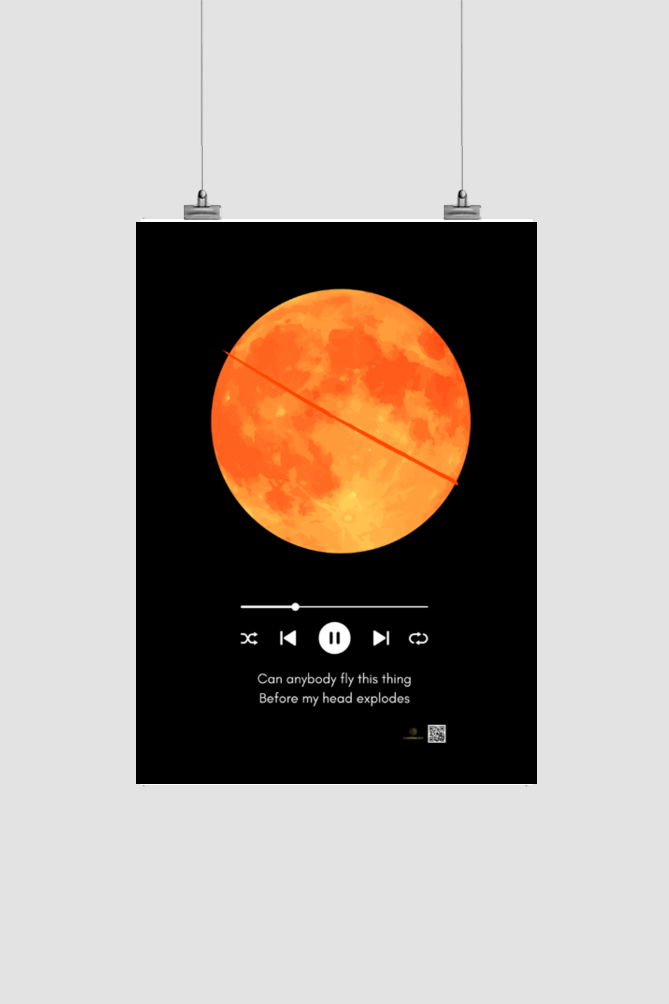 Bring a touch of mystery and music to your space with this A4-sized poster, featuring the “Can Anybody Fly This Thing Before My Head Explodes” design. This striking artwork showcases a deep red moon set against a dreamy, atmospheric background, accompanied by a music-playing track, making it a must-have for Coldplay fans, music lovers, and celestial art enthusiasts.
