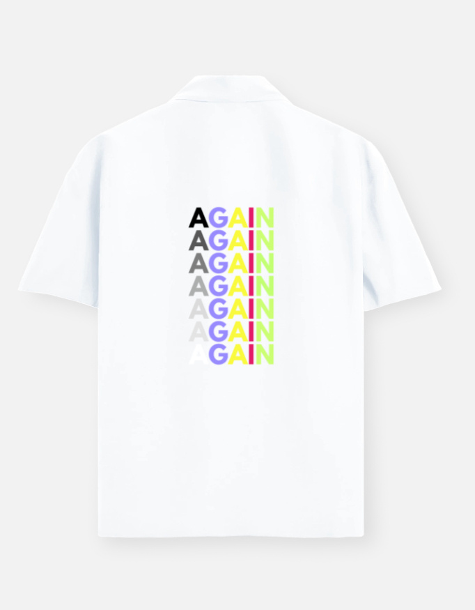 Sometimes life calls for a reset—and this oversized unisex shirt makes the message loud and clear. Featuring a vibrant stacked “AGAIN” graphic on the back, it’s perfect for those who believe in starting over, trying again, and doing it all with style. Made from crisp 240 GSM cotton, it’s breathable, structured, and flows with you—ideal for layering or making a solo statement.