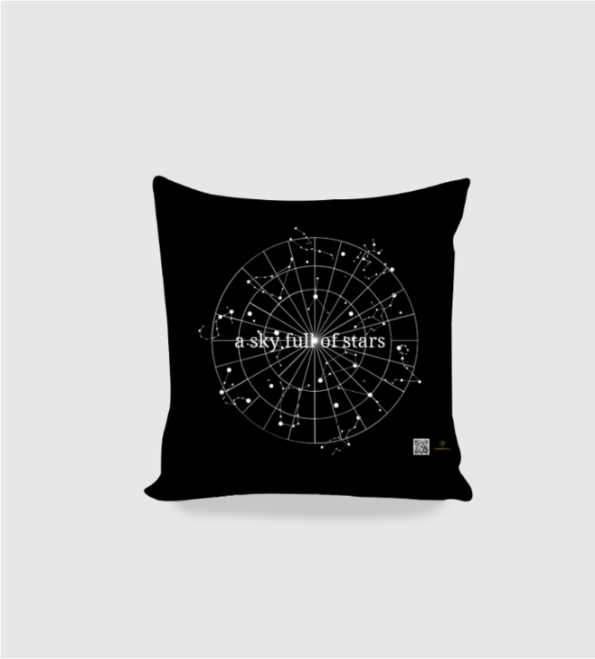 Transform your living space with this AOP cushion cover, featuring a shiny horoscope constellation circle with the phrase “A Sky Full of Stars” at its center. This design is perfect for music lovers, astrology enthusiasts, and dreamers, adding a touch of cosmic elegance to any setting.