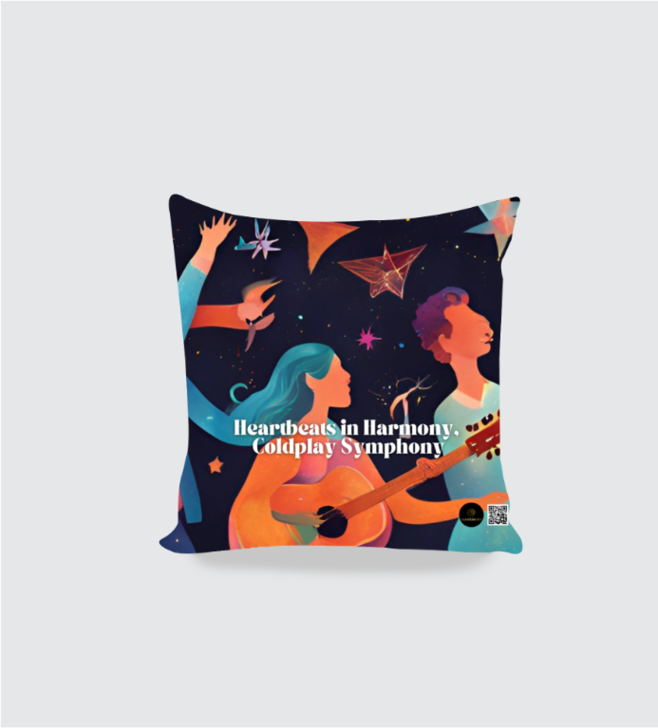 Bring the energy of music and movement into your space with the AOP Cushion Cover – Heartbeats in Harmony, Coldplay Symphony. This 16×16 inch cushion cover showcases a stunning artistic illustration of people playing music and dancing, capturing the vibrant essence of rhythm and harmony. Complemented by the inspiring phrase “Heartbeats in Harmony, Coldplay Symphony,” this design embodies the universal connection of music, emotions, and togetherness.