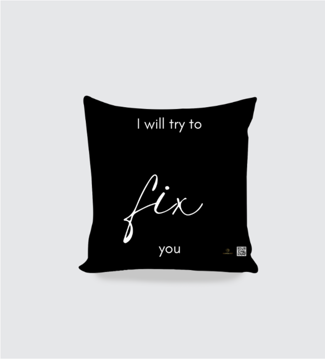 Add a touch of musical inspiration to your space with this I Will Try to Fix You AOP Cushion Cover, featuring Coldplay’s iconic and emotional lyrics in a beautifully artistic design. The phrase “I Will Try to Fix You” is elegantly placed at the center, with “Fix” standing out in bold, making this cushion cover a symbol of hope, healing, and resilience. Whether you’re a Coldplay fan or simply love decor that speaks to the heart, this design is the perfect way to blend music and art into your living space.