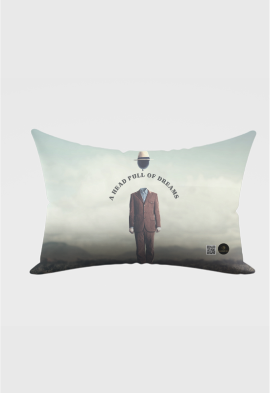 Transform your space with this artistic and surreal AOP pillow cover, featuring a man’s body walking on land with a floating head, and in the gap between, the phrase “A Head Full of Dreams” is elegantly curved. This design symbolizes imagination, creativity, and limitless possibilities, making it a must-have for dreamers and Coldplay fans.