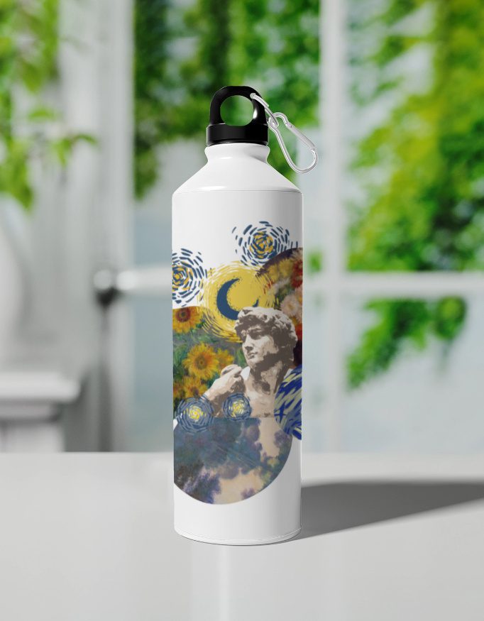 Hydrate in style with this Art Collage Aluminium Sipper Bottle, featuring a vibrant, museum-inspired print that blends florals, painterly textures, and classic sculpture elements. Designed for everyday use, this bottle turns your hydration routine into a piece of art—perfect for the gym, work, college, travel, or outdoor activities.
