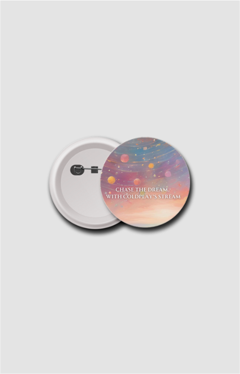 Express your love for music and adventure with this beautifully illustrated 58mm badge, featuring a stunning painting-style artwork of a person admiring a sunrise from a cliff, overlooking a serene sea. The inspiring phrase “Chase the Dream, with Coldplay’s Stream” sits elegantly at the center, making this badge a symbol of ambition, hope, and the beauty of dreams.