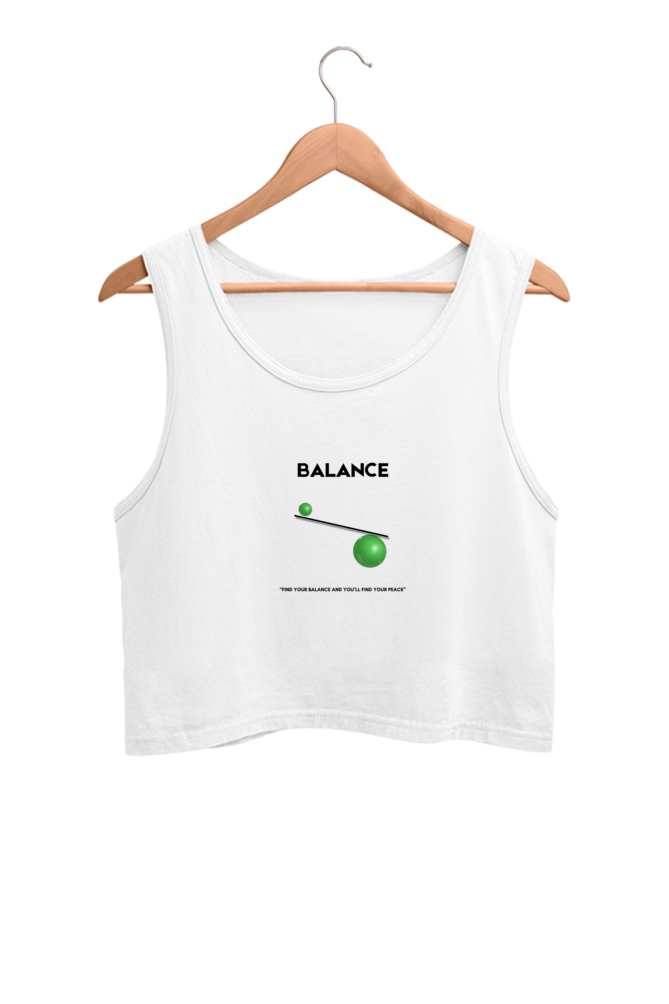 Find style and serenity in this Balance crop tank top – a minimalist design that speaks volumes. Featuring a sleek visual of balance spheres with the empowering quote: