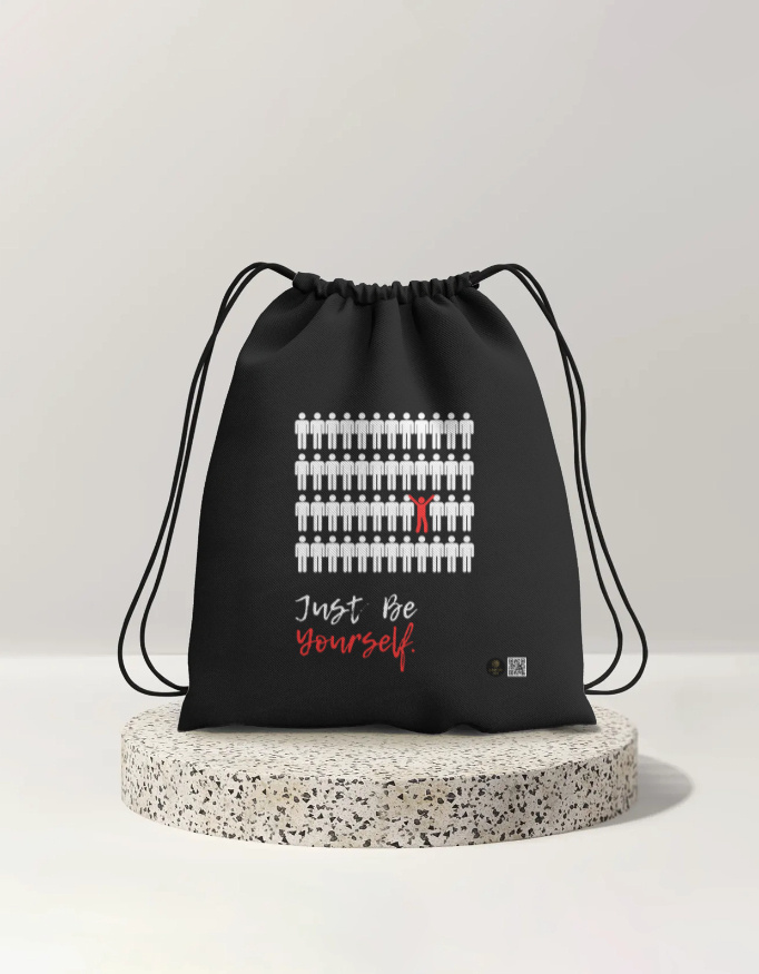Celebrate individuality with the “Just Be Yourself” drawstring bag — designed for self-expression and everyday utility. The standout visual speaks volumes without saying a word.