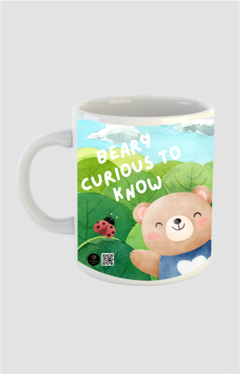 Sip your way through curiosity with our “Beary Curious to Know” coffee mug! Featuring an adorable bear peeking through vibrant green leaves with a little ladybird nearby, this design celebrates the joy of questioning, exploring, and growing. The sweet phrase Beary Curious to Know makes this mug a charming addition to any learning or teaching space.