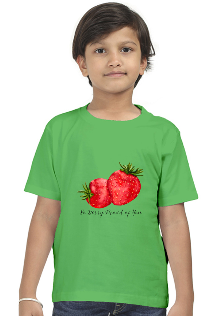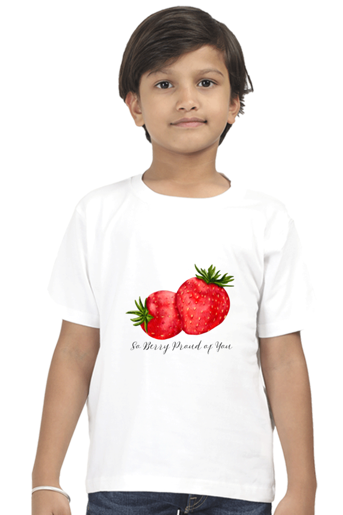 Celebrate his little wins with big love in our “Berry Proud” boys’ t-shirt! Featuring two cheerful strawberries and the encouraging words So Berry Proud of You, this tee is a sweet reminder that every step forward is worth celebrating.