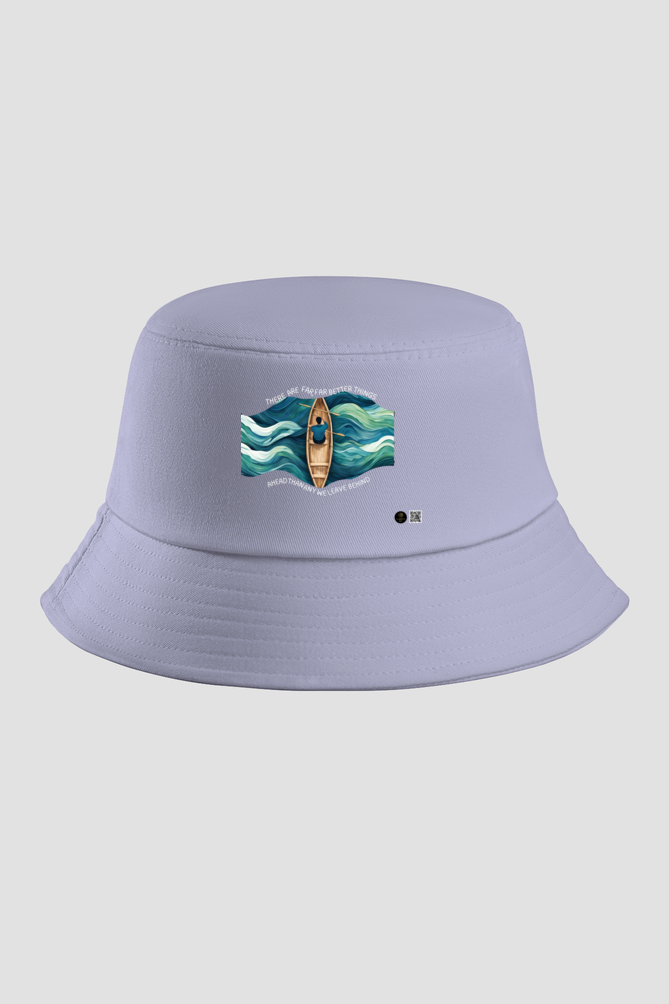 Embrace the journey ahead with the Better Things bucket hat. Designed with a striking print of a lone rower navigating through flowing waves, this hat symbolizes resilience and optimism. Featuring the inspiring words “There are far, far better things ahead than any we leave behind,” this stylish bucket hat is a perfect blend of comfort and motivation.