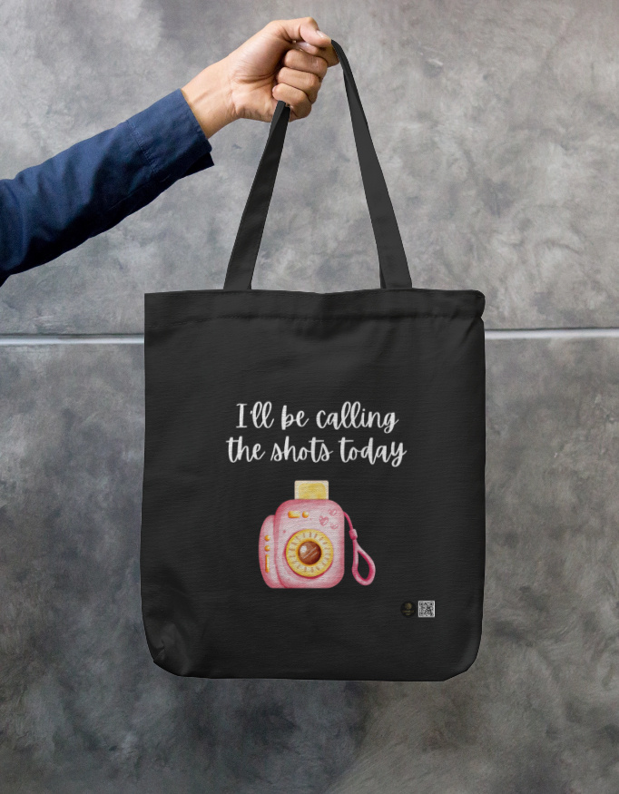 Make a statement wherever you go with this charming tote featuring a pink camera and the quote “I’ll be calling the shots today.”