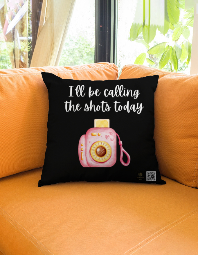 Add a splash of personality to your space with this stylish cushion cover featuring a vibrant camera illustration and the phrase “I’ll be calling the shots today.”