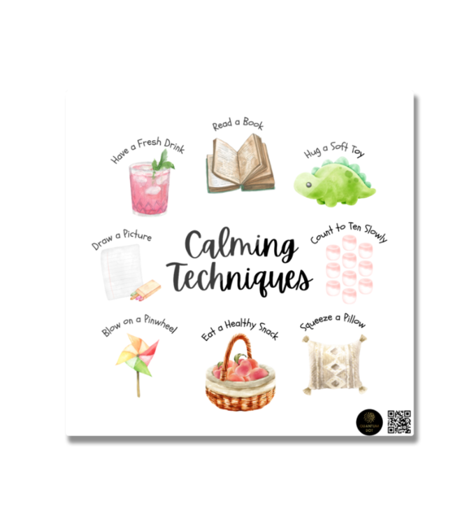 Add calm to any space with our Calming Techniques Fridge Magnet — a handy, visual guide to simple emotional regulation strategies like deep breathing, counting, grounding, and pausing. Designed to support mindfulness and self-regulation, this magnet is perfect for classrooms, therapy rooms, refrigerators, or any calm-down space.