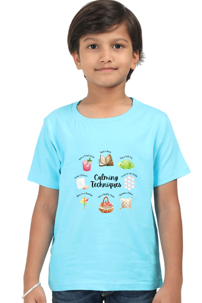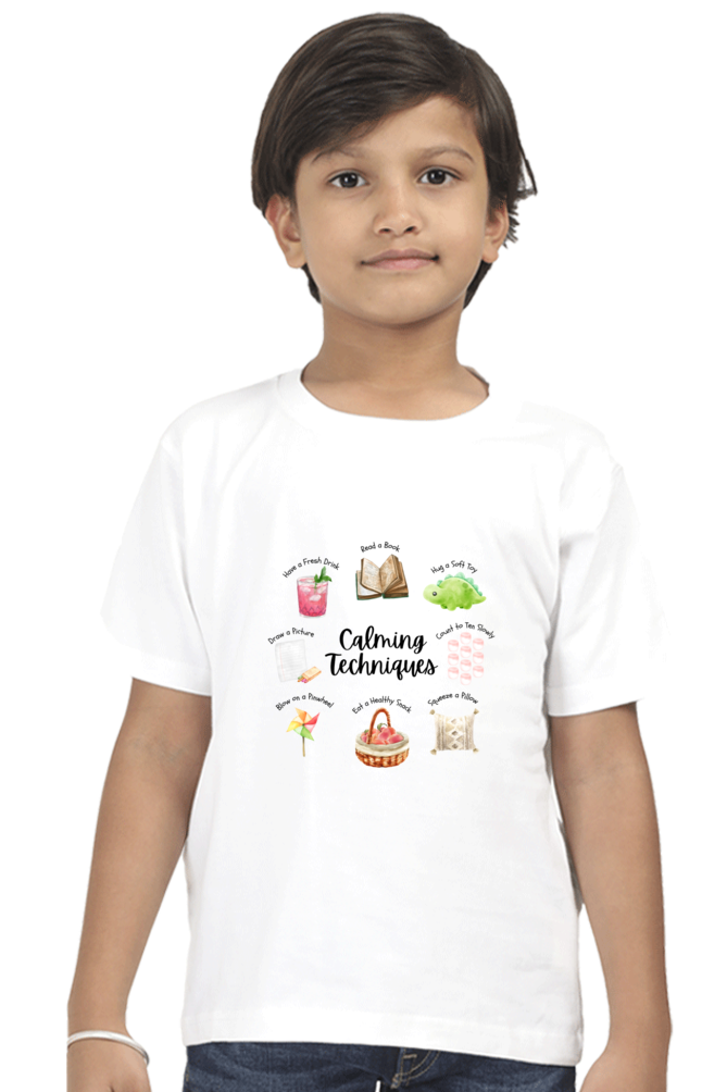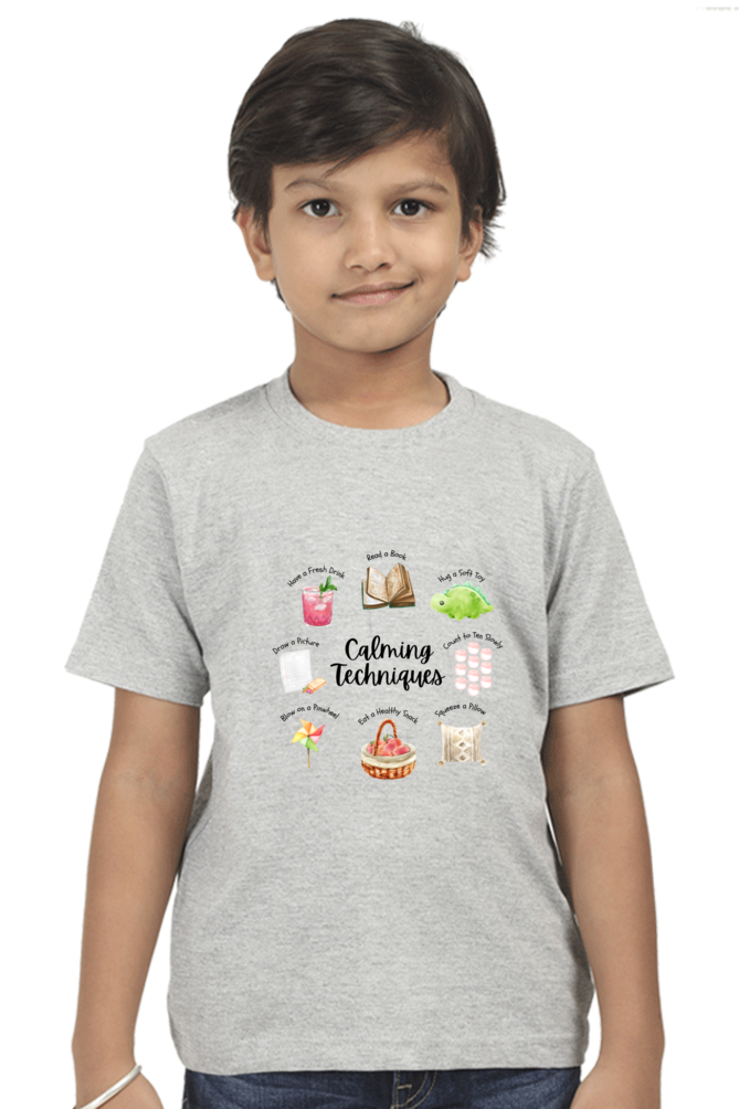 Calming Techniques Boys’ T-Shirt – Mindfulness & Emotional Regulation Design – Soft Cotton Tee for Kids, Students & Calm Down Spaces