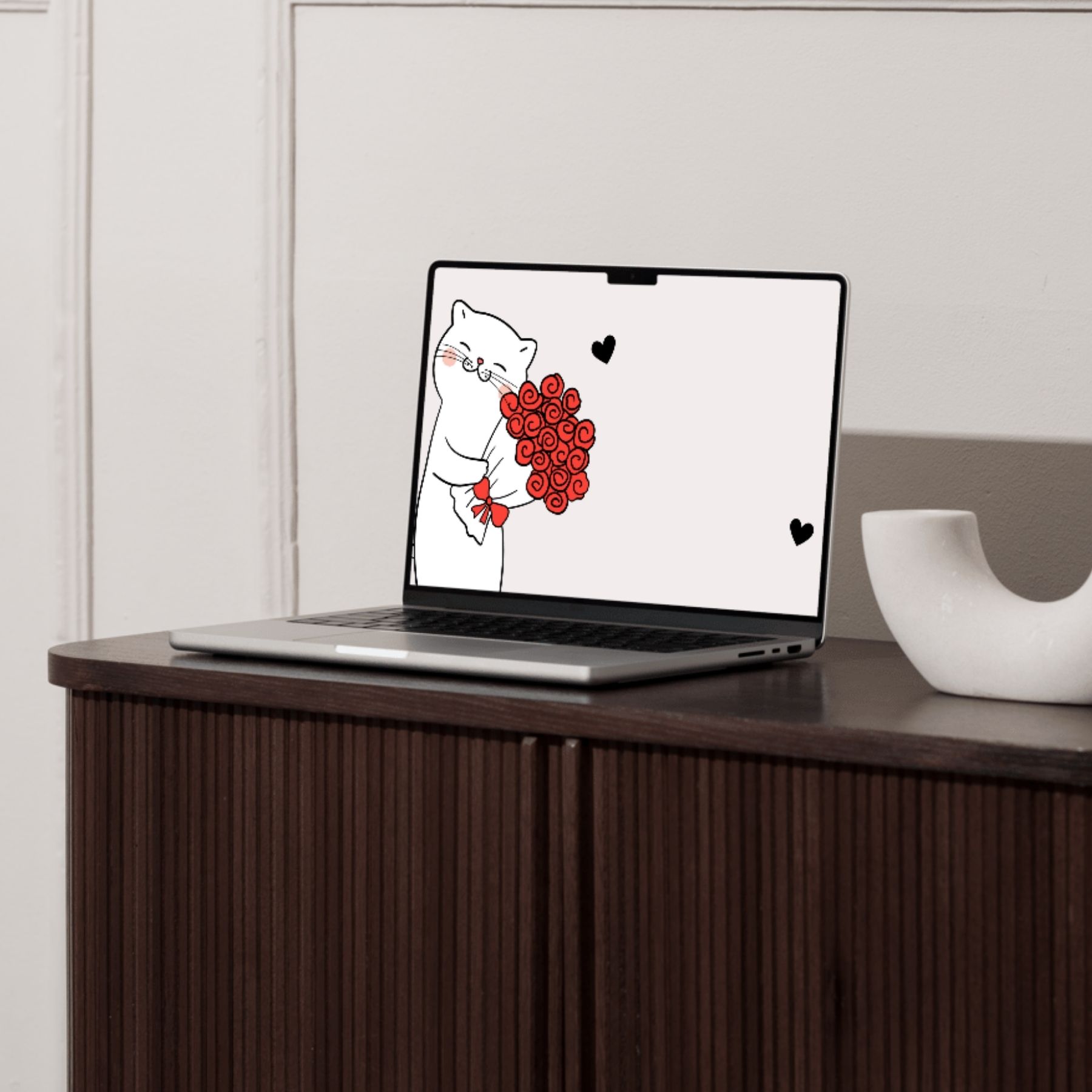 Add a touch of sweetness to your desktop with this charming cat with a flower bouquet wallpaper! Featuring an adorable cat holding a vibrant flower bouquet, this design is perfect for cat lovers and those who appreciate the beauty of nature. Whether you’re brightening your workspace or celebrating love and joy, this wallpaper brings a smile to any screen.