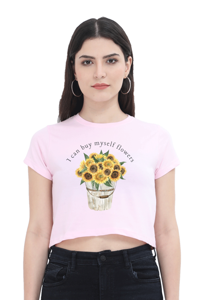 Cropped T-shirt – “I Can Buy Myself Flowers” with Sunflower Bouquet Design