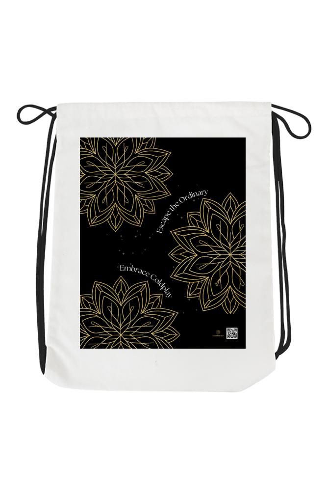 Step into a world of music, art, and celestial beauty with the Drawstring Bag – Escape the Ordinary, Embrace Coldplay. Featuring a mesmerizing golden geometric floral design set against a cosmic starry sky, this bag blends elegance and mysticism, creating a truly eye-catching piece. The phrase “Escape the Ordinary, Embrace Coldplay” wraps around the design, making it the perfect companion for those who find inspiration in both music and the universe.