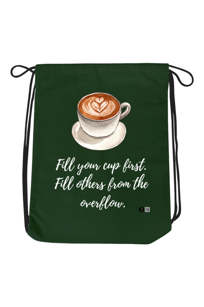 Stay inspired and carry your essentials effortlessly with our “Overflow with Self-Care” Drawstring Bag. This design features a soothing cappuccino illustration alongside the meaningful reminder: “Fill your cup first. Fill others from the overflow.” A perfect way to encourage mindfulness, self-care, and balance in your daily life.