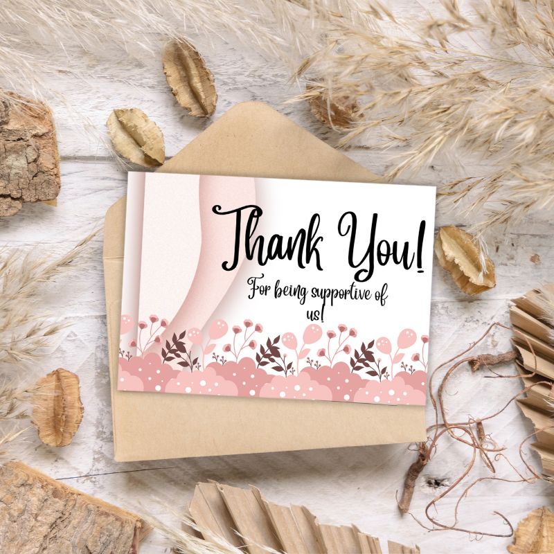 • Size: Designed in a standard 148x105mm size, this thank you card is ideal for printing or sending digitally. It’s easy to print at home or through a professional service.