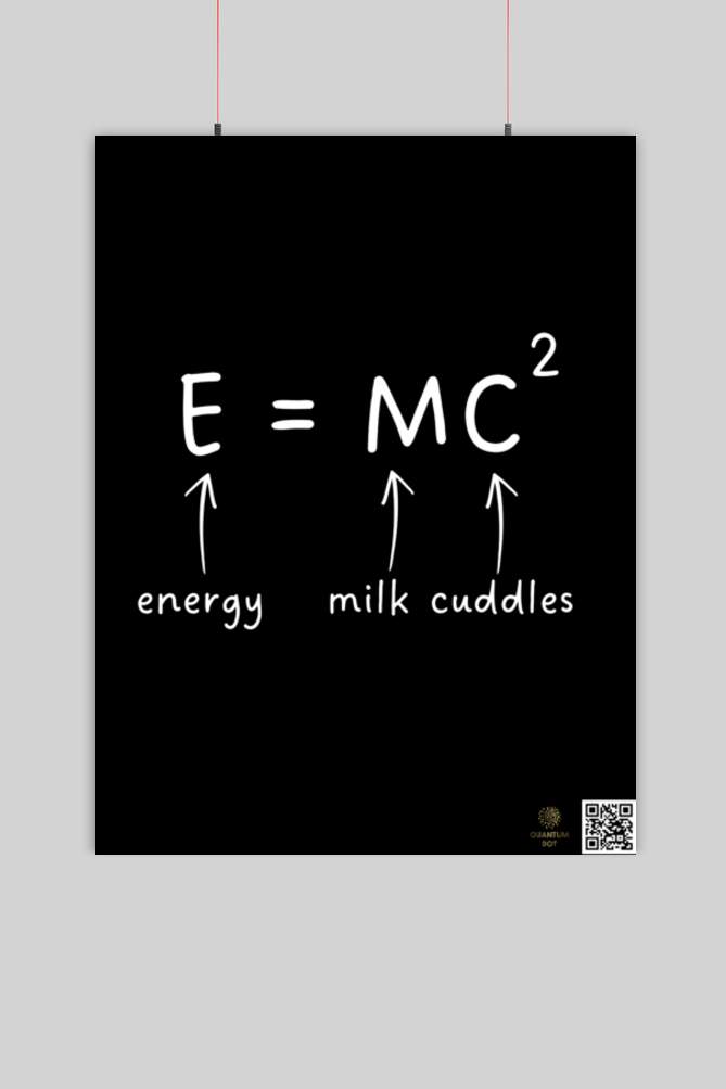 Bring brains and humor into your space with this “Einstein’s Baby Formula” 18×24 inch poster, a creative and witty twist on the famous E=MC⊃2; equation! This dark edition features a bold, high-contrast design, making it an eye-catching decor piece for nurseries, kids’ rooms, classrooms, or science-loving homes.