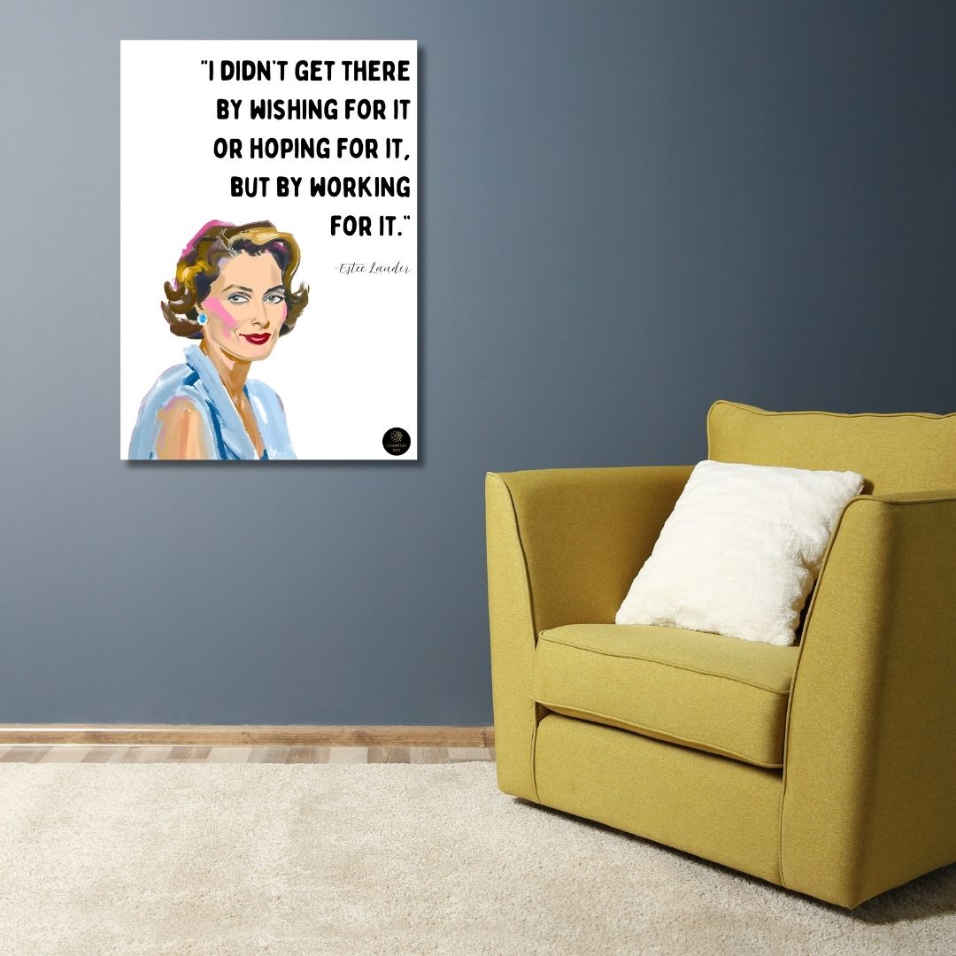 Channel the power of perseverance and hustle with this elegant and empowering digital wall art featuring a timeless quote by beauty industry icon Estée Lauder. Whether you’re launching a brand, building your business, or fueling your daily goals, this quote will remind you that success comes not from dreaming alone—but from showing up and doing the work.