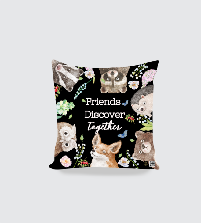 Bring the magic of the forest into your home with our Friends Discover Together cushion cover! Featuring adorable woodland animals like foxes, raccoons, owls, and bears, this nature-inspired design is perfect for kids’ rooms, play areas, or any cozy corner.
