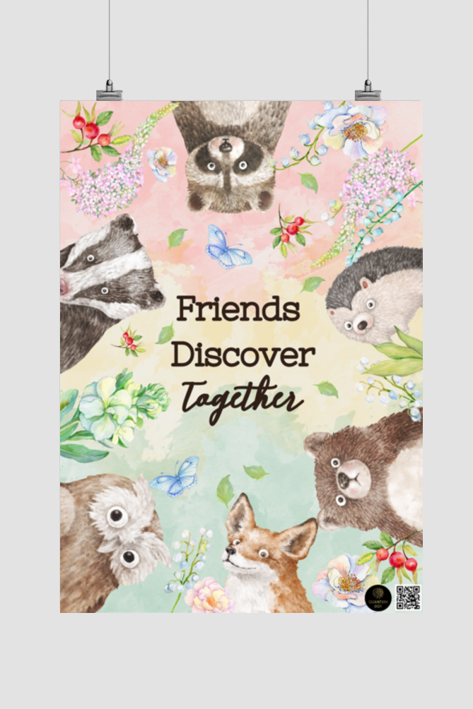 Bring the magic of friendship and discovery into your child’s space with this adorable “Friends Discover Together” A3 poster! Featuring a delightful woodland animal illustration with raccoons, foxes, owls, and more, this charming artwork inspires a love for nature and adventure. Perfect for nurseries, playrooms, classrooms, and kids’ bedrooms, this high-quality print adds warmth and imagination to any space.