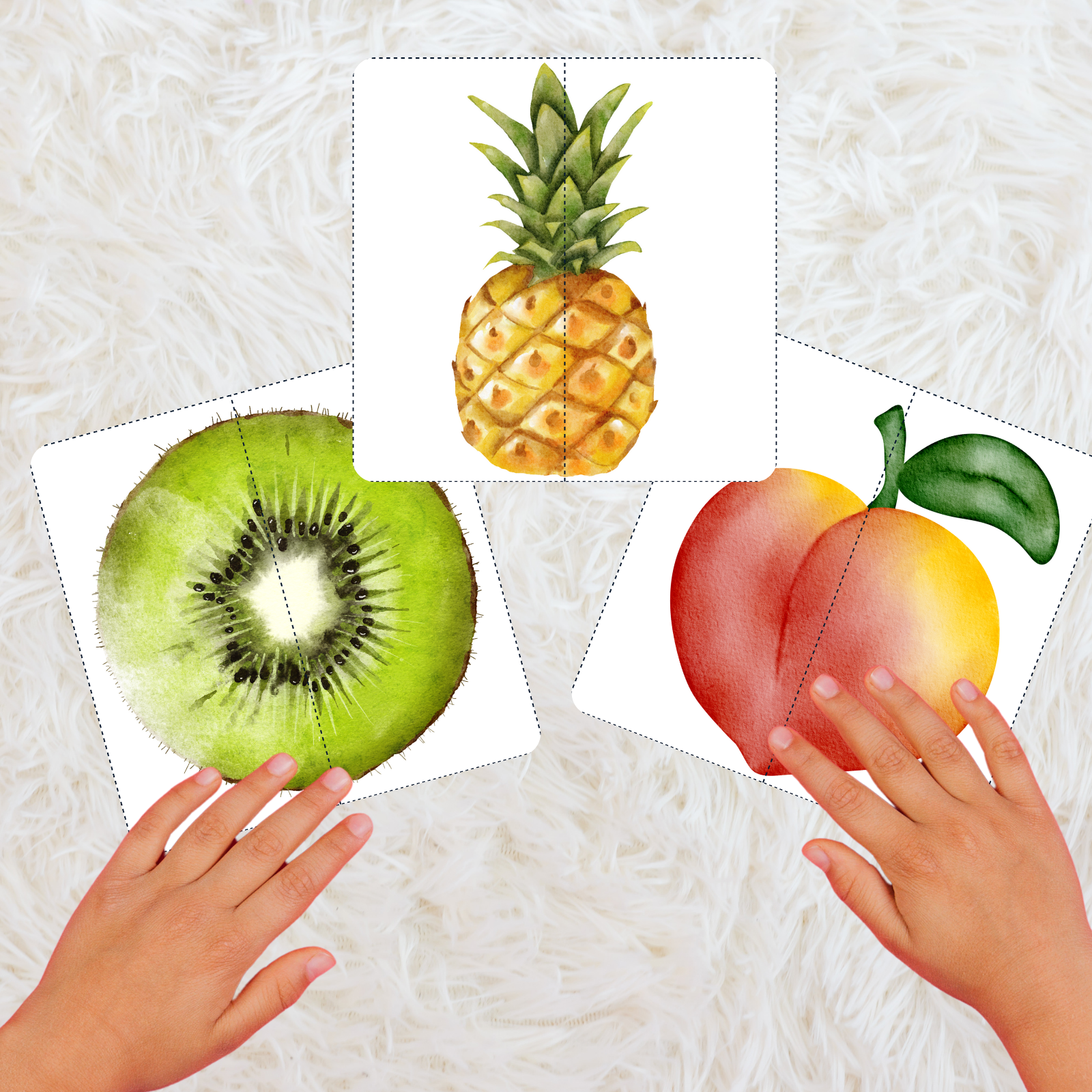 - Print & Cut – Print the fruit cards on thick paper for durability and cut along the dotted lines to create matching pairs.