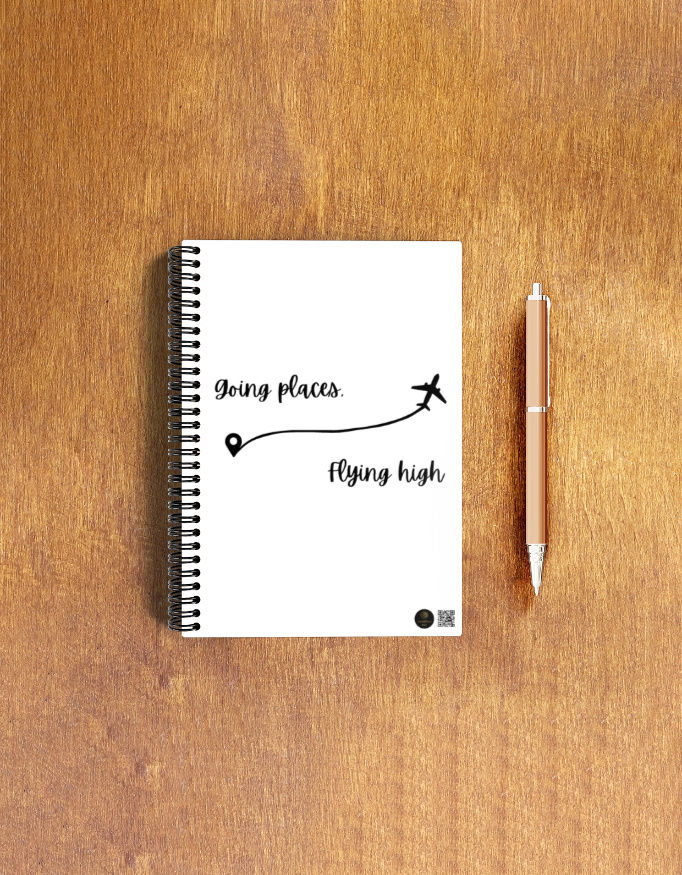 Stay inspired and organized with the “Flying High – Going Places” spiral notepad. This A5-sized notebook features a durable 300 GSM cover with a motivational travel-themed design, paired with 70 GSM smooth writing paper inside. With 120 pages of space for your thoughts, to-do lists, sketches, or journaling, it’s perfect for students, professionals, and creatives alike. Compact, wire-bound, and easy to carry — your everyday essential for goal-getting on the go.