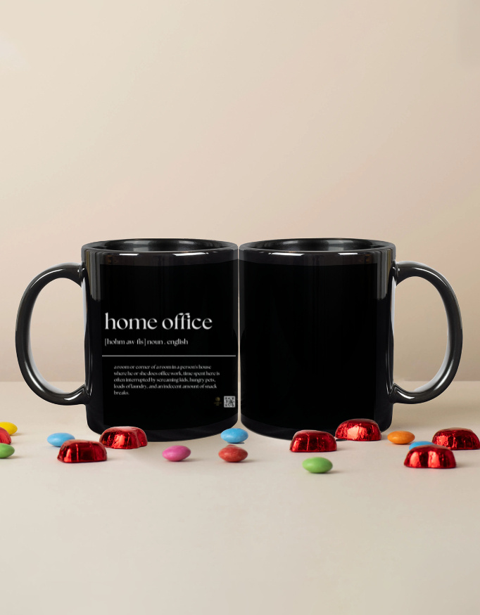 Bring the work-from-home reality to your coffee breaks with this “Home Office” definition mug. Highlighting the humour of juggling Zoom calls, pets, and laundry, this mug is both practical and relatable. A perfect desk accessory or a lighthearted gift for remote workers, freelancers, and home office pros.