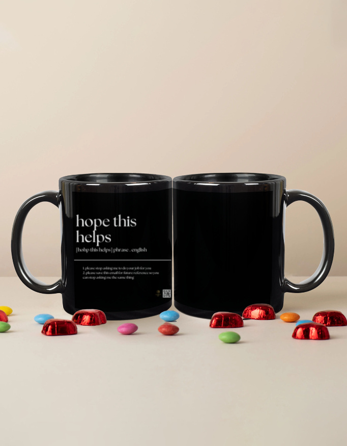 Polite yet pointed, this “Hope This Helps” definition coffee mug captures the subtle sarcasm of every email sign-off. A perfect mix of function and wit, it’s ideal for professionals, remote workers, or anyone fluent in office diplomacy. A great desk companion or a funny gift for coworkers.