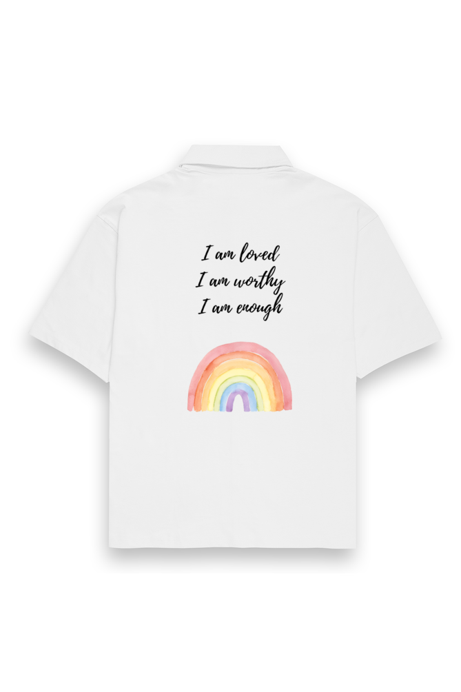 Embrace confidence and self-love with the I Am Worthy oversized shirt. Designed for ultimate comfort, this shirt features a minimalist yet inspiring design with a soft watercolor rainbow and uplifting affirmations—“I am loved, I am worthy, I am enough”—serving as a daily reminder of your inner strength and value.