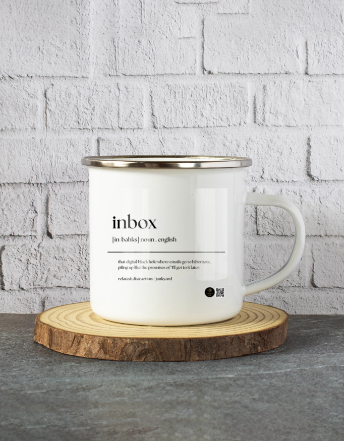 Make light of email overload with this “Inbox” definition coffee mug, a witty take on the digital black hole where unread emails live. Perfect for home, office, or as a cheeky gift, this mug adds humour to your coffee breaks while reminding you that your inbox will never truly be empty.