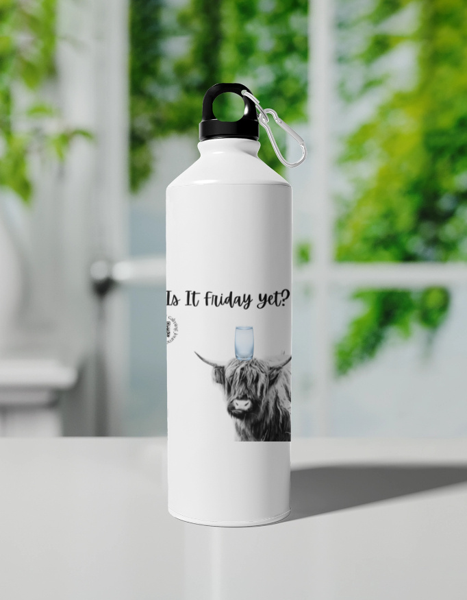 Design: Quirky “Is It Friday Yet?” print with a sturdy leak-proof cap and carabiner for easy carrying.