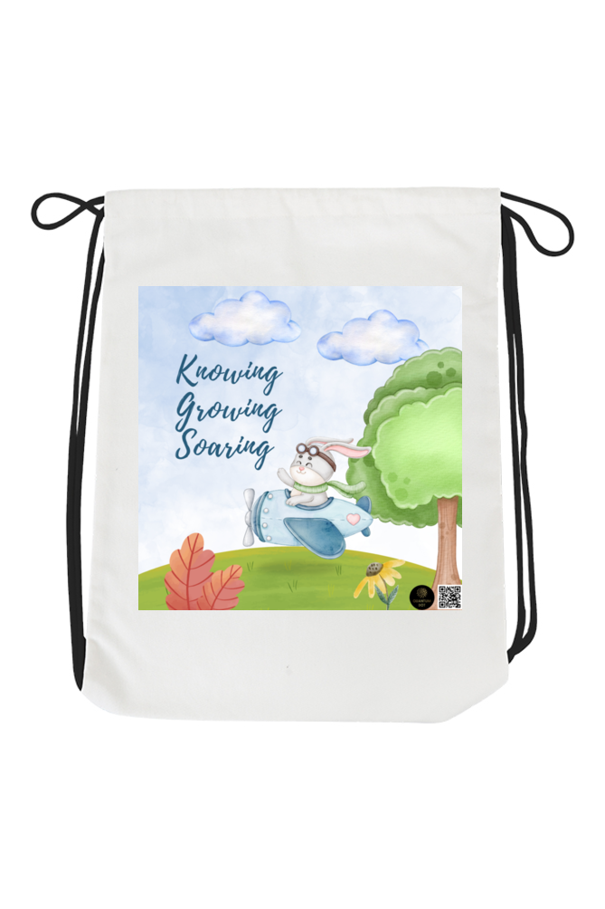 Inspire young minds to dream big and reach new heights with our Knowing, Growing, Soaring Drawstring Bag! Featuring an adventurous bunny flying a bright blue plane across green meadows, this cheerful design reminds students that every bit of learning helps them soar higher. Made from lightweight yet durable fabric, this bag is perfect for carrying school essentials, sports gear, library books, or adventure supplies. A wonderful motivational gift for kids, students, and teachers who believe in the journey of growth!