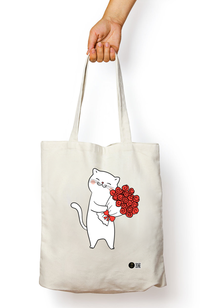 Carry your essentials in style with the “Love in Bloom” tote bag. Adorned with a charming cat holding a bouquet, this tote adds a playful and romantic touch to your everyday look. Perfect for shopping, the beach, or casual outings, this spacious tote will keep your items organized and bring a smile to your face wherever you go. A great gift for people loves cats or anyone who loves cute, heartwarming designs!