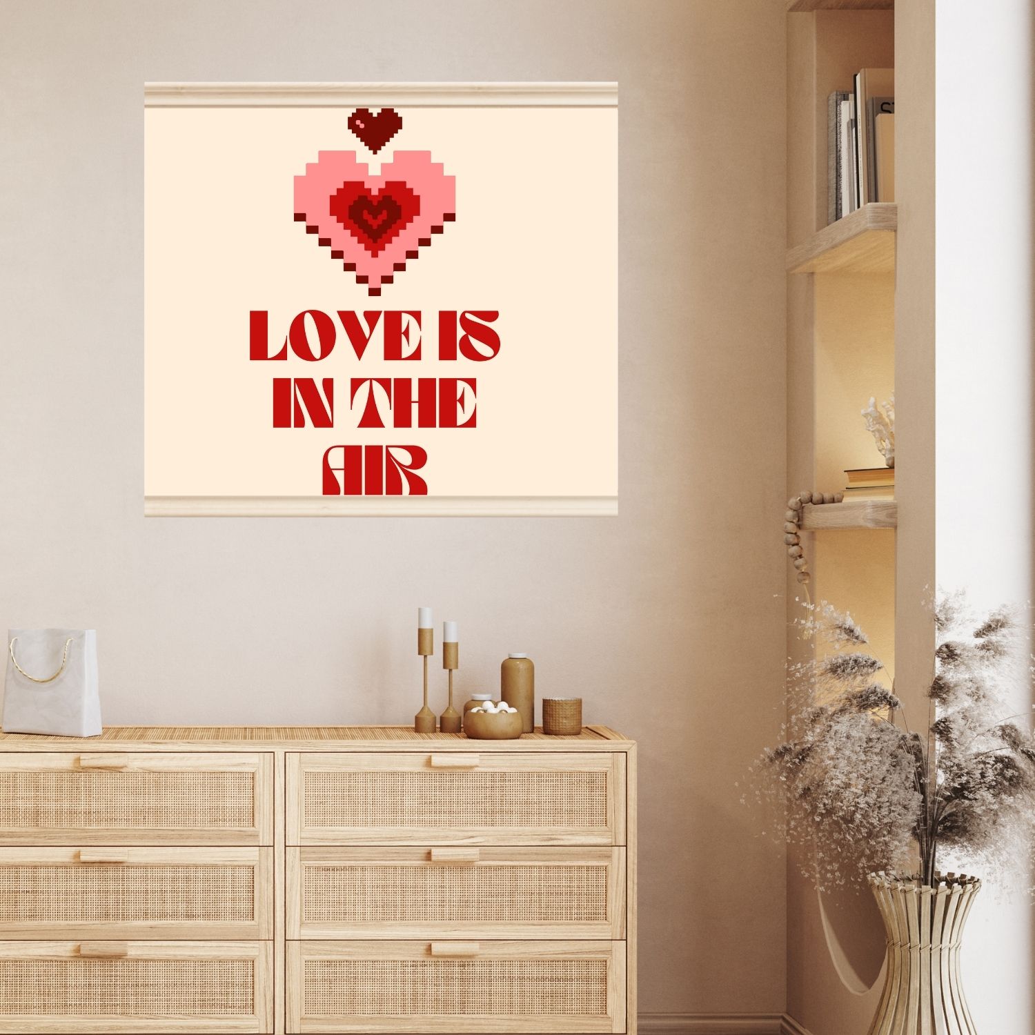 Add a modern, digital twist to your space with Love Is In The Air – ‘Love Is In The Air’ Quote with Pixelated Heart Wall Art. This design combines the romantic phrase “Love is in the air” with a creative, pixelated heart, symbolizing love in a contemporary and playful way. The contrast between the digital heart and the warm sentiment of the quote brings a unique blend of modern art and timeless affection, making it a perfect piece for any room.