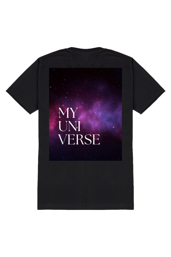 Embrace the magic of the cosmos with this stylish and comfortable crew-neck t-shirt, featuring a stunning purplish-black starry background with the phrase “My Universe” elegantly displayed on the side. Designed for music lovers, dreamers, and space enthusiasts, this t-shirt blends aesthetic appeal with everyday comfort.