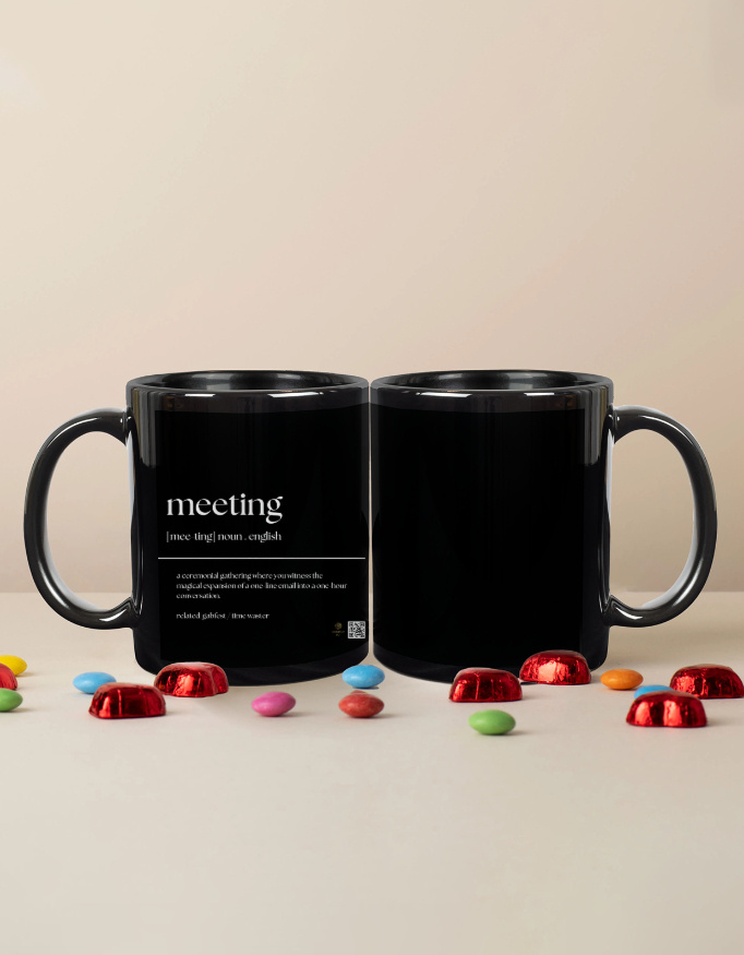 Sip with a side of sarcasm. This “Meeting” definition coffee mug pokes fun at the age-old tradition of turning a short email into an hour-long gathering. Perfect for professionals, remote workers, or anyone who knows the true comedy of corporate life, it’s a witty and functional addition to your desk.