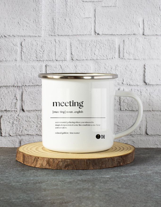 Sip with a side of sarcasm. This “Meeting” definition coffee mug pokes fun at the age-old tradition of turning a short email into an hour-long gathering. Perfect for professionals, remote workers, or anyone who knows the true comedy of corporate life, it’s a witty and functional addition to your desk.