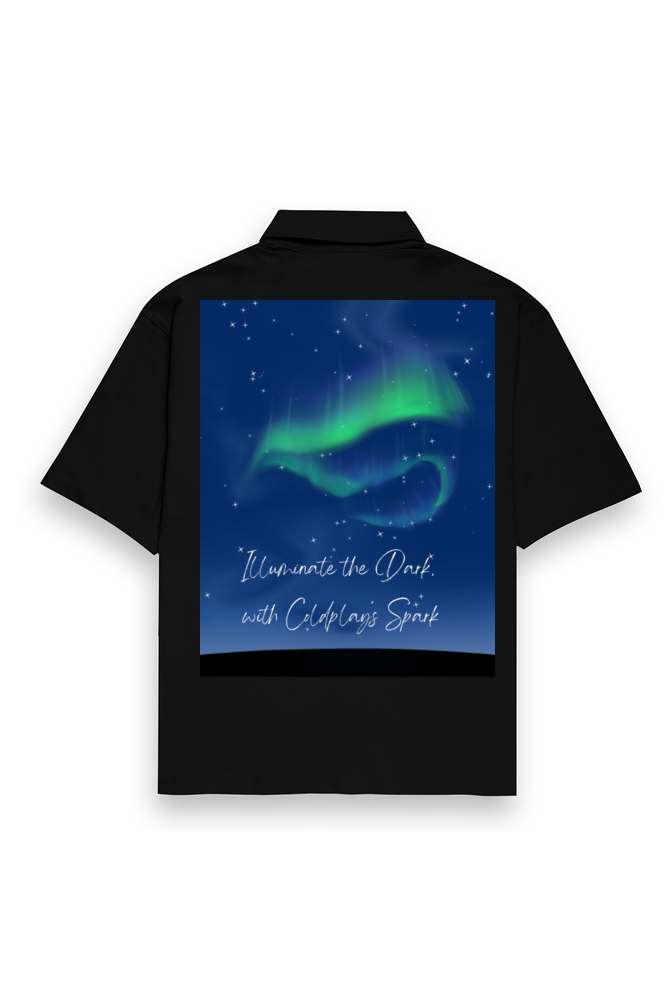Bring a cosmic glow to your wardrobe with this Men’s Oversized Shirt, featuring a stunning green aurora design set against a starry night sky. The phrase “Illuminate the Dark, with Coldplay’s Spark” captures the essence of Coldplay’s music and its ability to light up the world with melodies that inspire. Whether you’re headed to a Coldplay concert, out with friends, or simply lounging at home, this oversized shirt offers a stylish and comfortable fit that will make a statement wherever you go.