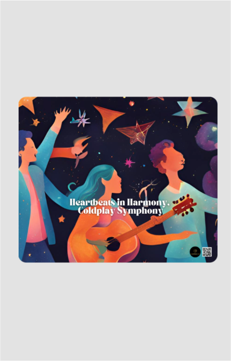 Add a burst of creativity and musical energy to your workspace with this Mouse Pad, featuring a stunning artistic illustration of people playing music and dancing. The design perfectly captures the vibrancy and connection that music brings, with dynamic movement and colorful hues. Beneath the illustration, the phrase “Heartbeats in Harmony, Coldplay Symphony” elegantly ties the artwork to the timeless power of music, celebrating both rhythm and the symphony of life.