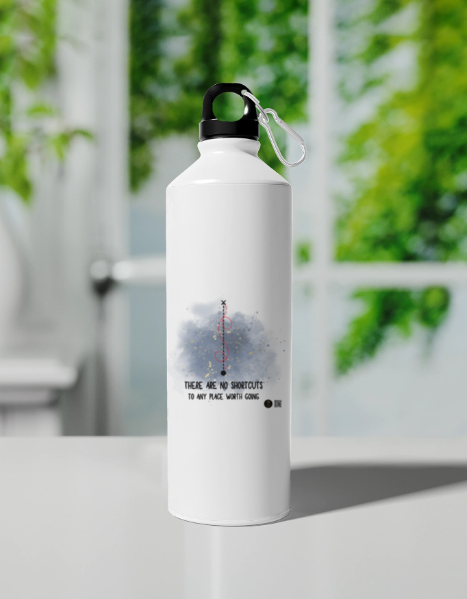 Stay inspired and hydrated with this sleek 750 ml aluminum sipper bottle, featuring the powerful quote: “There are no shortcuts to any place worth going.”